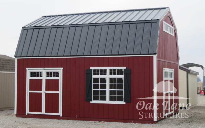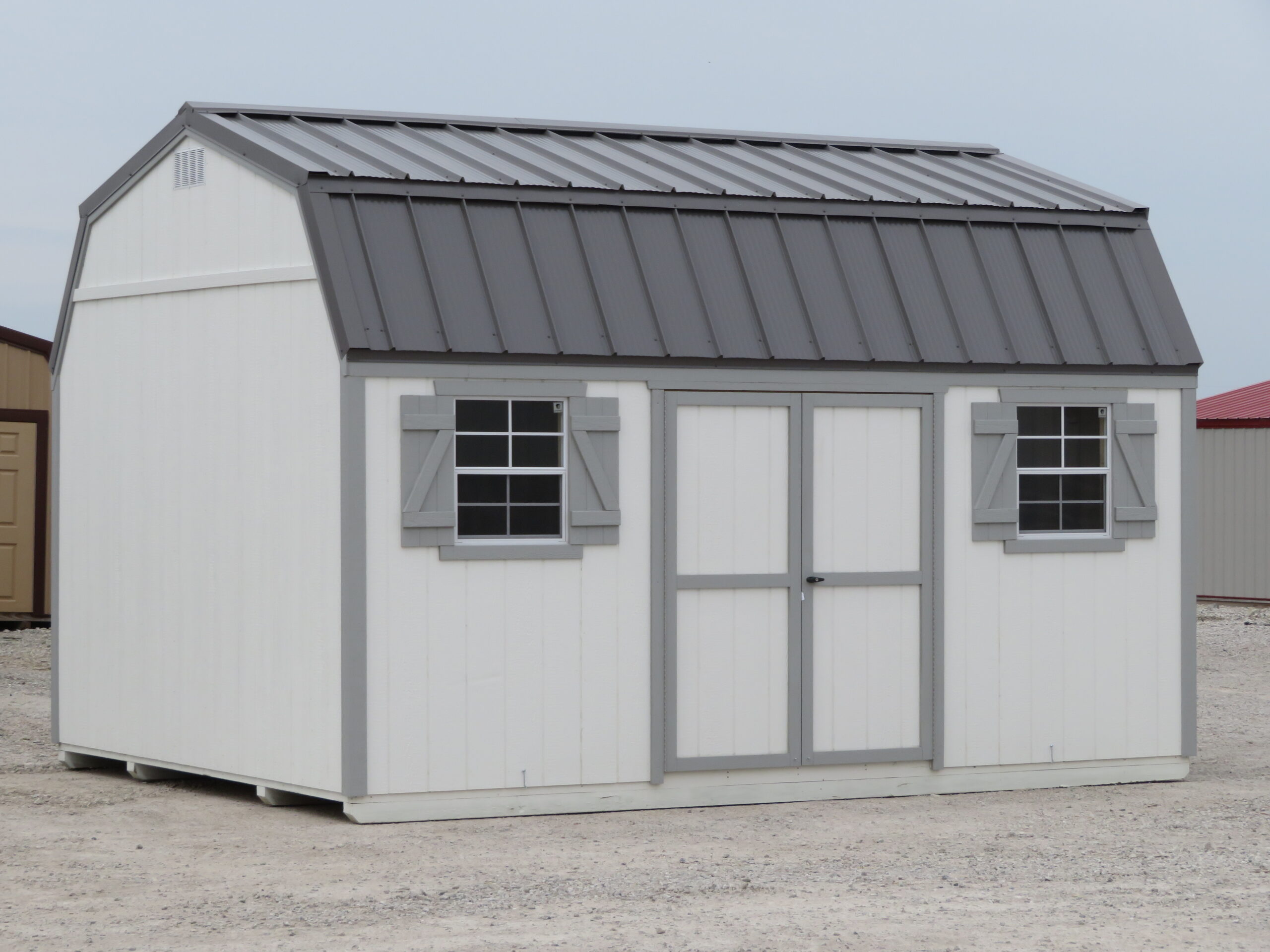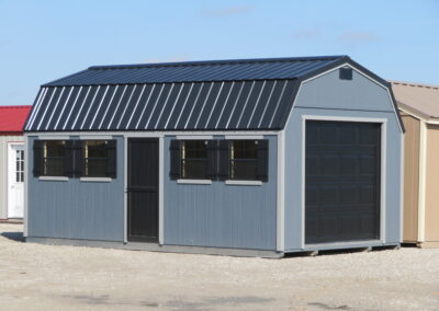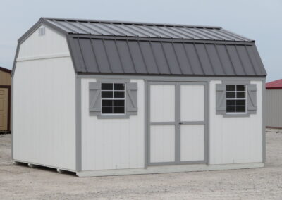 The Gambrel Barn has an old-fashioned look that will add character to your backyard! It is a budget-friendly option for storage on a small lot. The roof design provides extra headroom, giving you more space even in the small shed sizes. The strong construction provides quality storage for years. Are you paying for a storage unit in town? Consider our Rent-to-Own option and put your monthly payments toward a shed that will be yours at the end of the payment plan. Not only will you own a quality barn, but you will also eliminate the drive into town every time you need something in storage. A storage shed in your backyard is convenient and a good asset to your property.